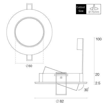 Any Lamp Recessed Spot Circular Tiltable White | Cutout 75mm - GU5.3 Socket