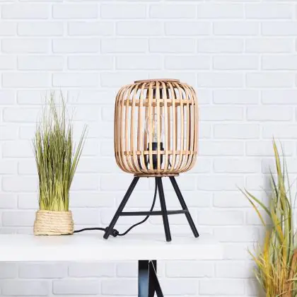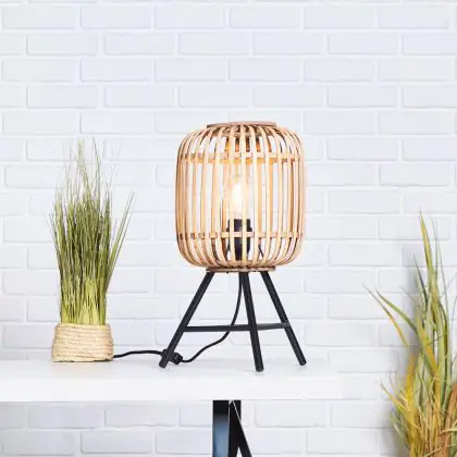 Brilliant Woodrow Table Lamp Metal Bamboo Brown | Suitable for 1x E27