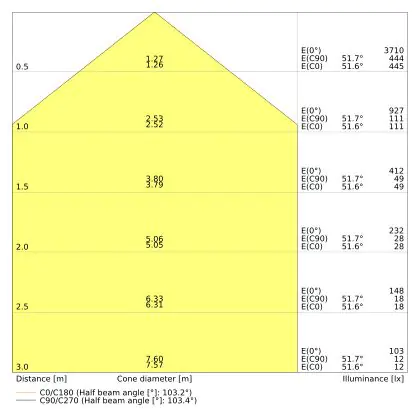 Beam angle of 100°