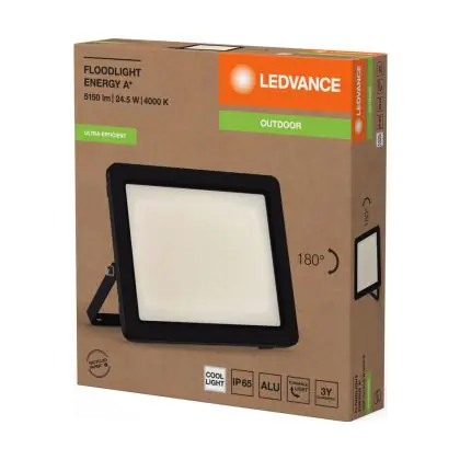 Ledvance LED Floodlight Aluminium Black 24.5W 4600lm 100D - 840 Cool White | IP65 - Symmetrical