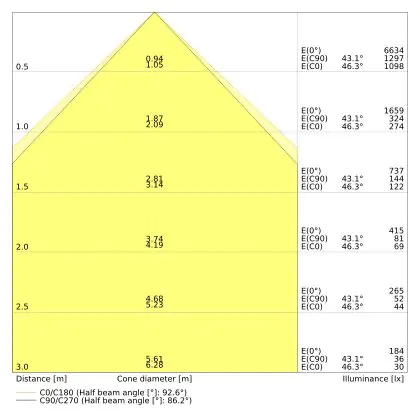 The colour code is a combination of colour rendering (CRI) and light colour (Kelvin). The first number indicates the colour rendering (1 = very poor colour rendering, 9 = maximum colour fastness). The second and third number contains the light colour. Example: the colour code 830 consists of good colour rendering (8) and warm white light (3000K). |