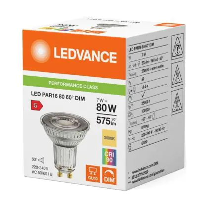 Multipack 10x Ledvance LED PAR16 GU10 Reflector 7W 575lm 60D - 930 Warm White | Best Colour Rendering - Dimmable - Replaces 80W