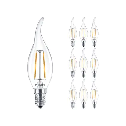 Multipack 10x Philips Corepro LED Candle E14 Bent-tip Filament Clear 2W 250lm - 827 Extra Warm White | Replaces 25W