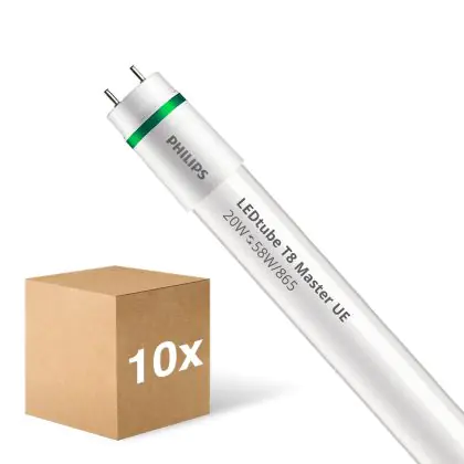 Multipack 10x Philips LED Tube T8 MASTER (EM/Mains) Ultra Efficiency 20W 3700lm - 865 Daylight | 150cm - Replaces 58W