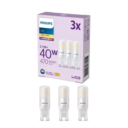 Multipack 3x Philips LED Capsule G9 Frosted 3.7W 470lm - 827 Extra Warm White