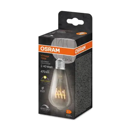 Osram Vintage 1906 LED E27 Edison Filament Clear 4.8W 470lm - 827 Extra Warm White | Dimmable - Replaces 40W