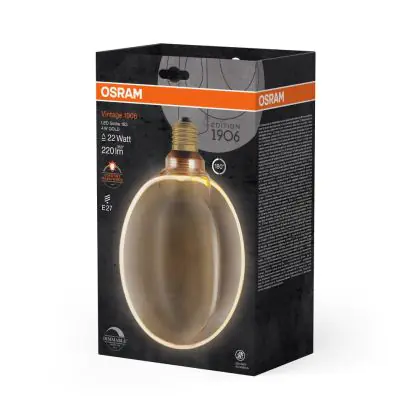 Osram Vintage 1906 LED E27 Globe Filament Gold 183mm 4W 220lm - 818 Extra Warm White | Dimmable - Replaces 22W